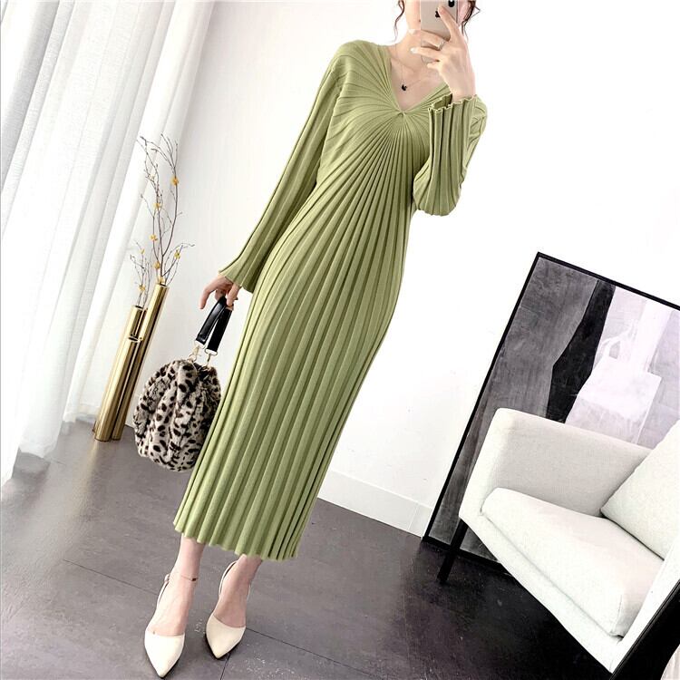 ワンピース ニットワンピース ロング丈 袖あり 長袖 Vネック スリム ストレート Iライン ハイウエスト リブ リブニット 伸縮性 ニット きれいめ シンプル 大人 上品 おしゃれ お洒落 大人可愛い 大人女子 こなれ感 無地 春 秋 10代 20代 30代 40代 レディース 女性用 デート お出かけ 女子会 休日 普段使い 楽ちん モテ M L XL 黒 ブラック 緑 グリーン ベージュ カーキ ピンク