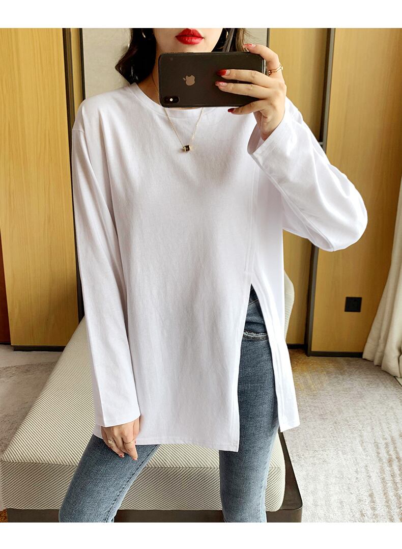 トップス カットソー 白トップス 袖あり 長袖 ラウンドネック スリット 伸縮性 綿 シンプル カジュアル 大人 おしゃれ お洒落 かっこいい こなれ感 無地 春 秋 2021 10代 20代 30代 40代 レディース 女性用 ママ デート お出かけ 休日 普段使い 楽ちん S M L XL 白 ホワイト