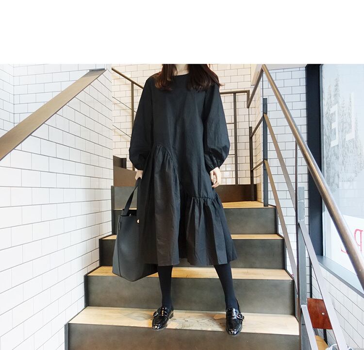 ワンピース フレアスカート チュールスカート フレアワンピース ミモレ 袖あり 長袖 ボリューム袖 パフスリーブ ラウンドネック フレア Aライン フリル 切り替えデザイン シンプル カジュアル 上品 おしゃれ かっこいい 大人女子 こなれ感 個性的 クール モダン 主役級 存在感 とろみ感 抜け感 無地 オールシーズン 10代 20代 30代 40代 ママ オフィス ビジネス OL 通勤 学生 通学 デート お出かけ 公園デビュー 女子会 お泊まり 休日 リゾート 旅行 ホテル レストラン 着回し