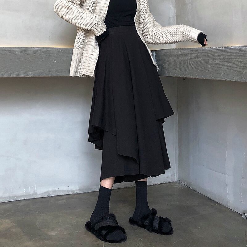 イレギュラーなヘムデザイン、歩くたびに揺れる姿が女らしさ満点。