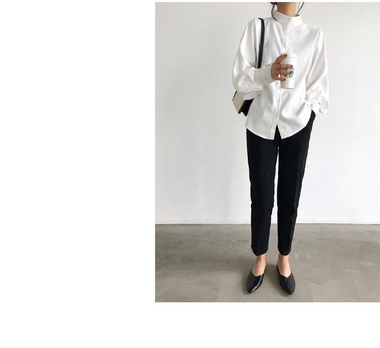 トップス シャツ 白シャツ 白トップス 袖あり 長袖 ボリューム袖 スタンドカラー ストレート 前開き きれいめ シンプル カジュアル 大人 上品 おしゃれ お洒落 かっこいい 大人女子 こなれ感 クール 無地 春 秋 2022 10代 20代 30代 40代 50代 60代 レディース 女性用 ママ オフィス OL 通勤 学生 デート お出かけ 女子会 休日 着回し 普段使い S M L XL 白 ホワイト 黒 ブラック 青 ブルー アプリコット