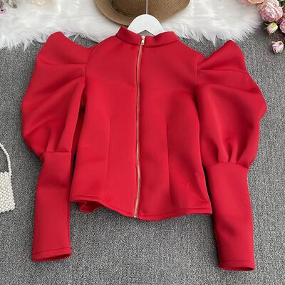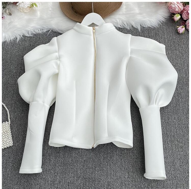 パワショルブラウス トップス ブラウス ショート ショート丈 袖あり 長袖 ハイネック ファスナー かわいい 大人可愛い きれいめ シンプル カジュアル 大人 上品 おしゃれ お洒落 レトロ 大人可愛い 大人女子 こなれ感 ラフ ラブリー キュート ガーリー 個性的 主役級 存在感 無地 春 秋 10代 20代 30代 レディース OL 通勤 学生 通学 デート お出かけ 公園デビュー 女子会 休日 着回し 普段使い 重ね着 色展開 白 ホワイト 黒 ブラック 赤 レッド 緑 グリーン