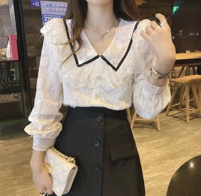 トップス ブラウス 白トップス 袖あり 長袖 襟付き ストレート レース 透け感 かわいい きれいめ シンプル カジュアル 上品 おしゃれ お洒落 大人可愛い 大人女子 エレガント 存在感 無地 春 2022 10代 20代 30代 40代 レディース 女性用 ママ 学生 デート お出かけ 女子会 休日 着回し 普段使い 重ね着 モテ S M L XL 2XL 白 ホワイト