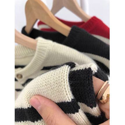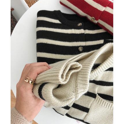 ボーダーニットカーディガン トップス カーディガン 袖あり 長袖 ラウンドネック 前開き かわいい 大人可愛い きれいめ シンプル カジュアル 大人 上品 おしゃれ お洒落 かっこいい レトロ 大人可愛い 大人女子 こなれ感 ラフ ラブリー キュート ガーリー 個性的 主役級 存在感 柄 ボーダー 春 秋 冬 10代 20代 30代 レディース OL 通勤 学生 通学 デート お出かけ 公園デビュー 女子会 休日 着回し 普段使い 重ね着 韓国系 オルチャン サイズ S M L XL 2XL ブラック