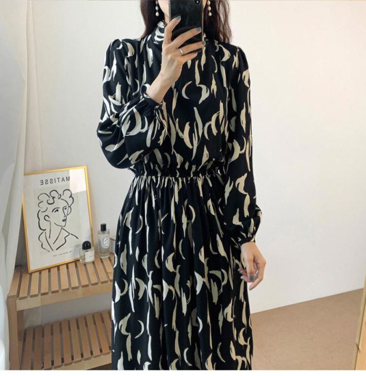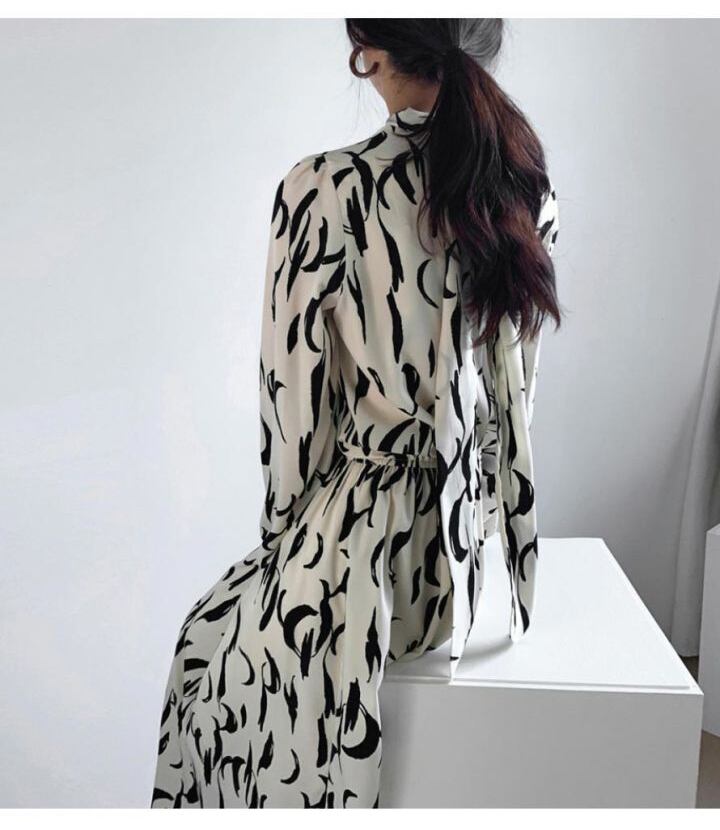 ボウタイワンピース ワンピース フレアワンピース ロング ロング丈 袖あり 長袖 ハイネック ウエストマーク ウエストリボン ハイウエスト かわいい 大人可愛い きれいめ シンプル カジュアル 大人 上品 おしゃれ お洒落 かっこいい レトロ 大人可愛い 大人女子 こなれ感 ラブリー キュート ガーリー 個性的 エレガント モダン 主役級 存在感 柄 春 秋 10代 20代 30代 レディース 学生 通学 デート お出かけ 公園デビュー 女子会 休日 着回し 普段使い 重ね着 韓国系 オルチャン ホワイト