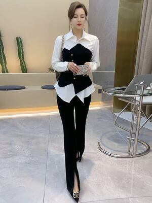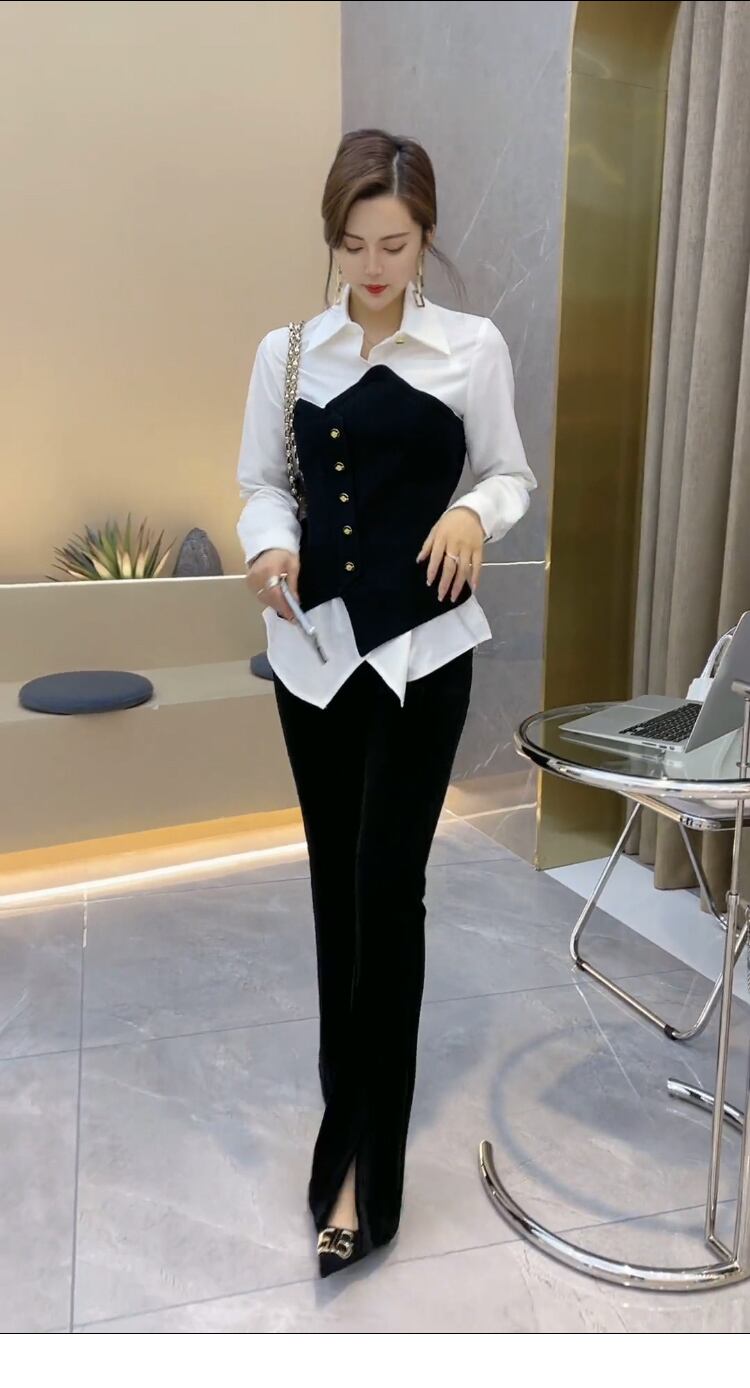 シャツ フェイクレイヤード 長袖 襟 ウエストマーク フレア トップス 春 秋 シンプル きれいめ 通勤 オフィスカジュアル 通学 学生 キャンパスコーデ 重ね着風 お出かけ イベント 二次会 デート 女子会 エレガント フェミニン おしゃれ お洒落 大人女子 カラー ホワイト サイズ展開 S M L XL