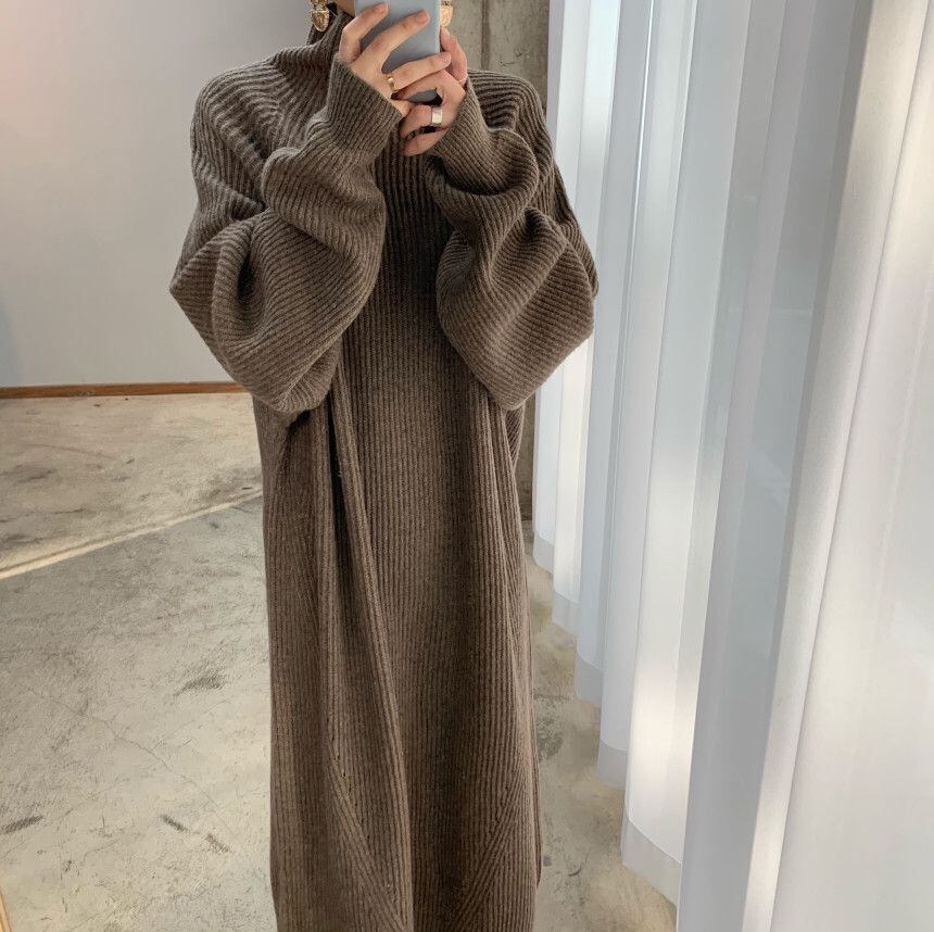 ハイネックニットワンピース ワンピース ワンピドレス ロング ロング丈 袖あり 長袖 ハイネック かわいい 大人可愛い きれいめ シンプル カジュアル 大人 上品 おしゃれ お洒落 レトロ 大人可愛い 大人女子 こなれ感 ラブリー キュート ガーリー 個性的 モダン 主役級 存在感 無地 秋 冬 10代 20代 30代 レディース 学生 通学 デート お出かけ 公園デビュー 女子会 休日 着回し 普段使い 重ね着 韓国系 色展開 茶色 ブラウン 灰色 グレー アプリコット