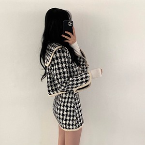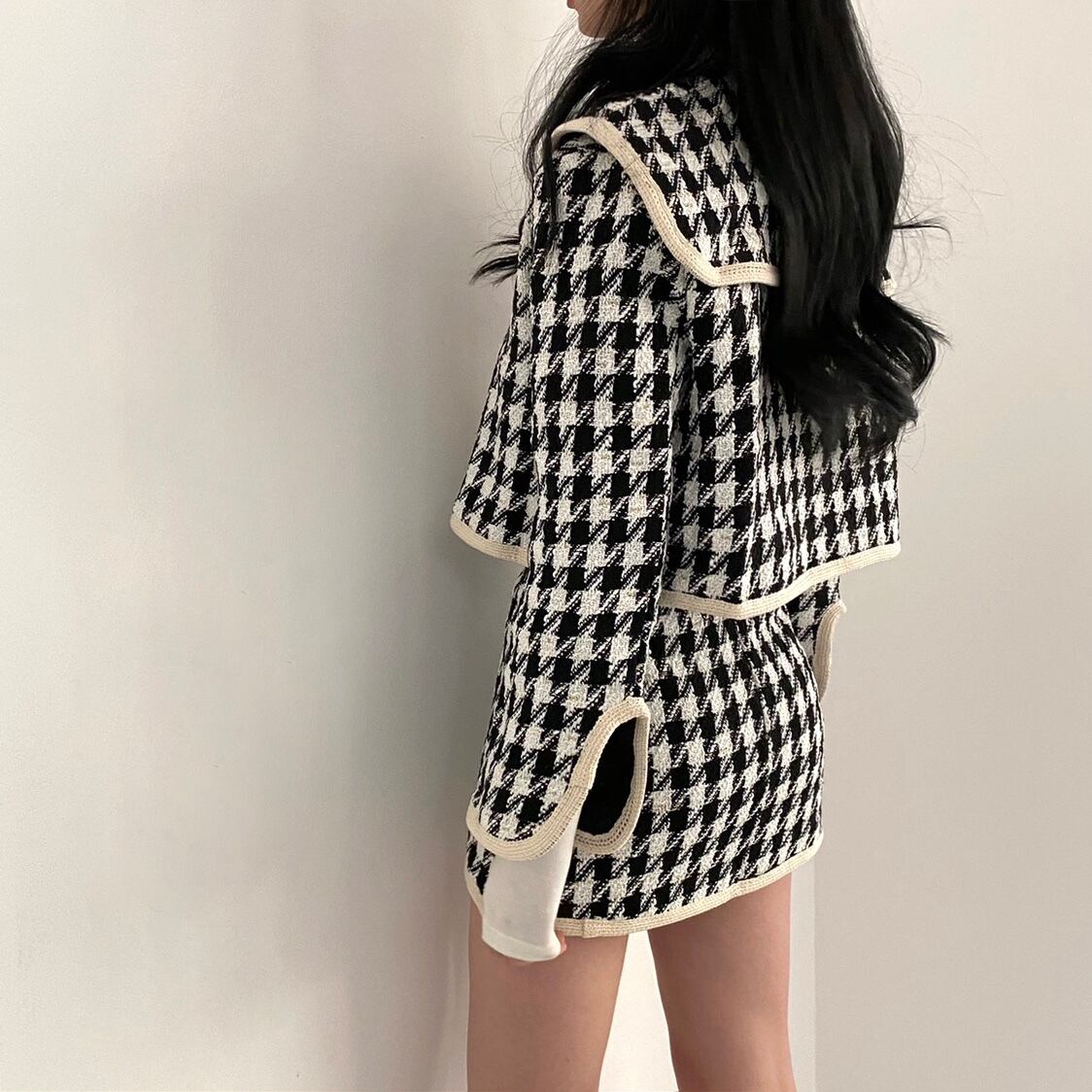 千鳥格子柄セットアップ セットアップ ジャケット ミニスカート ミニ ミニ丈 袖あり 長袖 Vネック 襟付き ハイウエスト 前開き 上下セット 2点セット ツーピース かわいい 大人可愛い きれいめ シンプル カジュアル 大人 上品 おしゃれ お洒落 レトロ 大人可愛い 大人女子 こなれ感 ラフ キュート ガーリー 個性的 モダン 主役級 存在感 柄 千鳥格子 春 秋 10代 20代 30代 レディース OL 通勤 学生 通学 デート お出かけ 公園デビュー 女子会 休日 着回し 普段使い 重ね着 韓国系