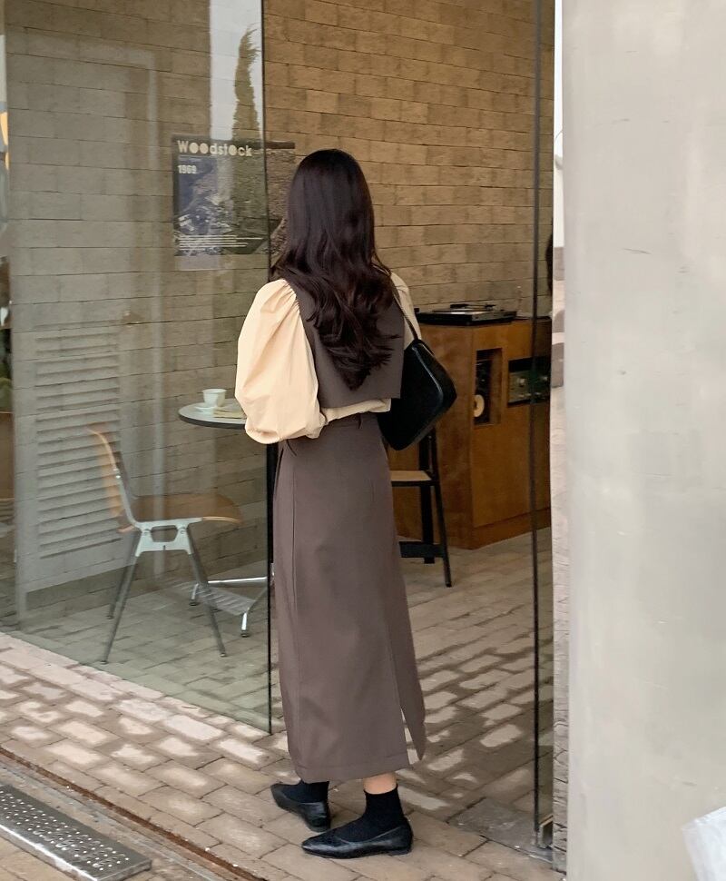 同素材のスカート&ベストできちんと感もあるセットアップは、デートやお出かけから通勤コーデまで幅広く使える一着。