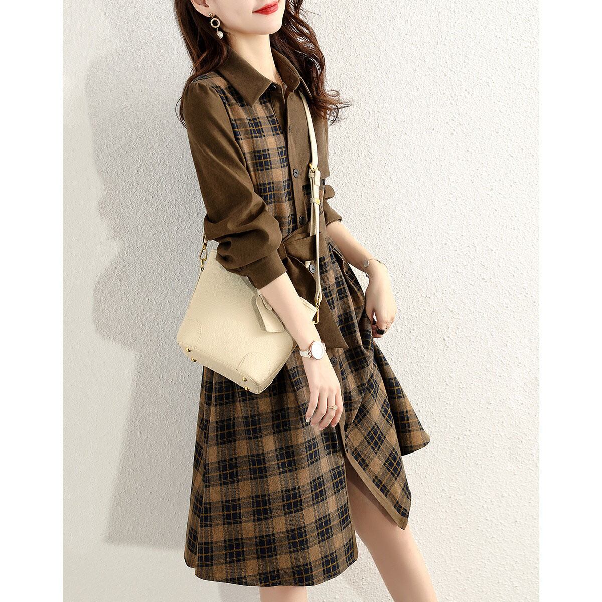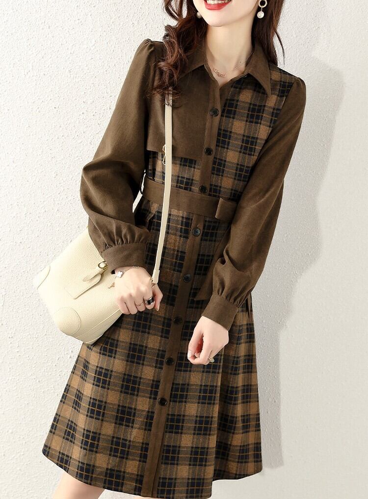 ワンピース シャツワンピース 膝丈 袖あり 長袖 襟付き POLO襟 Aライン ウエストリボン ハイウエスト ポリエステル 大人可愛い きれいめ カジュアル おしゃれ レトロ 大人女子 こなれ感 キュート ガーリー 主役級 柄 チェック柄 春 秋 2021 20代 30代 40代 レディース デート お出かけ 女子会 休日 イベント ホテル レストラン 着回し 普段使い 重ね着 モテ 新作 定番 インスタ映え フレンチスタイル サイズ M L XL 2XL 色展開 ブラウン