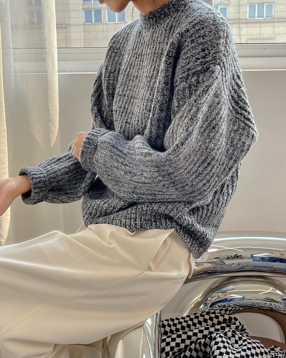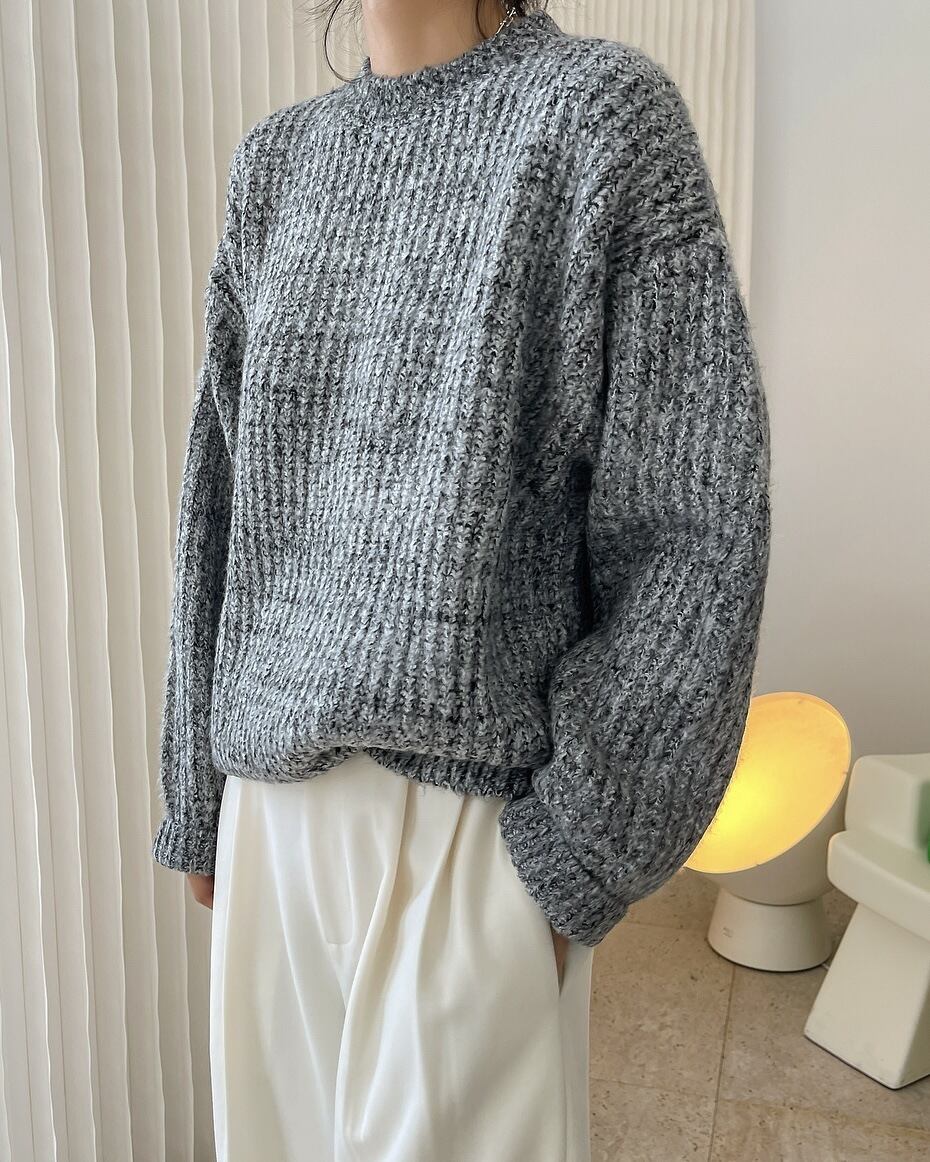トップス セーター 長袖 ラウンドネック もこもこ モコモコ ニット 厚手 かわいい 大人可愛い きれいめ シンプル カジュアル 大人 おしゃれ お洒落 大人可愛い 大人女子 こなれ感 ラフ メンズライク 主役級 存在感 無地 秋 冬 10代 20代 30代 レディース 学生 通学 デート お出かけ 公園デビュー 女子会 お泊まり 休日 普段使い ファッション コーデ スタイル 楽ちん 暖かい 防寒 モテ トレンド フリーサイズ ゆったり ゆる 灰色 グレー