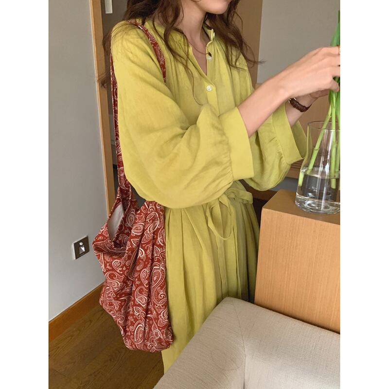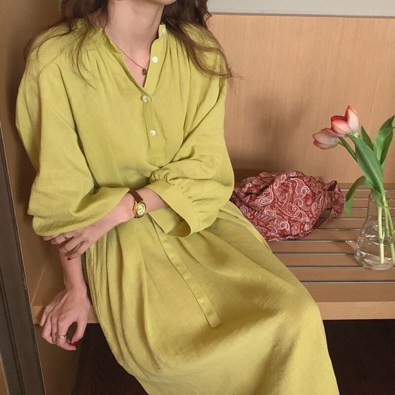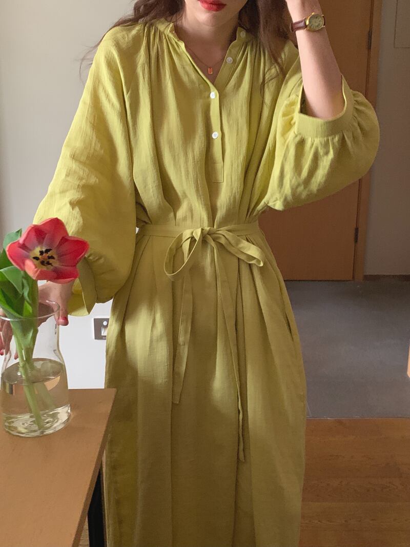 シャツワンピース ワンピース シャツワンピース ロング ロング丈 袖あり 長袖 スタンドカラー ウエストマーク ウエストリボン 前開き かわいい 大人可愛い きれいめ シンプル カジュアル 大人 上品 おしゃれ お洒落 レトロ 大人可愛い 大人女子 こなれ感 ラブリー キュート ガーリー 個性的 モダン 主役級 存在感 無地 春 秋 10代 20代 30代 レディース 学生 通学 デート お出かけ 公園デビュー 女子会 休日 着回し 普段使い 重ね着 韓国系 オルチャン 色展開 黄色 イエロー