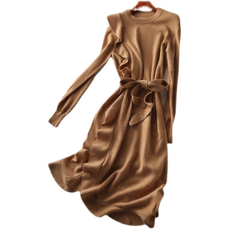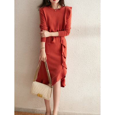 フリルニットワンピース ワンピース フレアワンピース 膝丈 ひざ丈 袖あり 長袖 ラウンドネック フリル かわいい 大人可愛い きれいめ シンプル カジュアル 大人 上品 おしゃれ お洒落 レトロ 大人可愛い 大人女子 こなれ感 ラブリー キュート ガーリー 個性的 モダン 主役級 存在感 フォーマル 無地 秋 冬 10代 20代 30代 レディース 学生 通学 デート お出かけ 公園デビュー 女子会 休日 着回し 普段使い 重ね着 韓国系 オルチャン サイズ S M L XL 2XL 色展開 ブラック