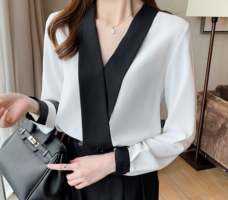 バイカラーⅤネックブラウス トップス ブラウス 袖あり 長袖 Vネック かわいい 大人可愛い きれいめ シンプル カジュアル 大人 上品 おしゃれ お洒落 レトロ 大人可愛い 大人女子 こなれ感 ラブリー キュート ガーリー 個性的 モダン 主役級 存在感 フォーマル 無地 春 秋 10代 20代 30代 レディース OL 通勤 学生 通学 デート お出かけ 公園デビュー 女子会 休日 着回し 普段使い 重ね着 韓国系 オルチャン サイズ S M L XL 2XL 色展開 白 ホワイト