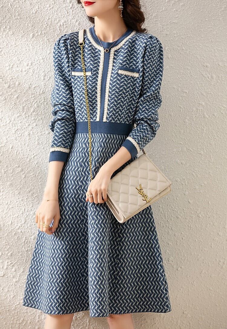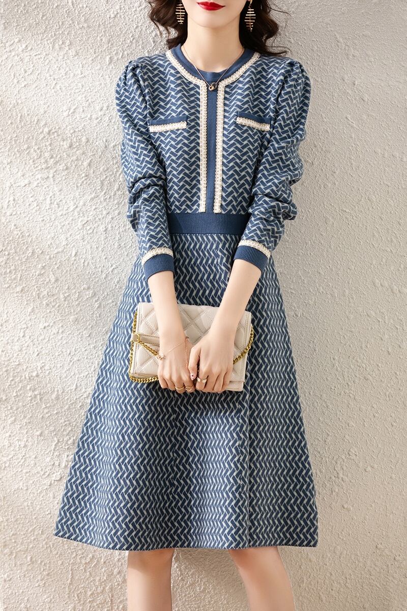 ワンピース ニットワンピ ひざ丈 袖あり 長袖 ラウンドネック スリム Aライン ハイウエスト ポリエステル ニット 大人可愛い きれいめ 大人 上品 おしゃれ レトロ 大人女子 エレガント 存在感 フォーマル 柄 チェック柄 春 秋 入学式 入園式 卒業式 卒園式 謝恩会 二次会 2021 30代 40代 50代 レディース OL デート お出かけ 女子会 休日 パーティー イベント ホテル レストラン 着回し 韓国系 ファッション モテ 美脚 新作 インスタ映え サイズ S M L