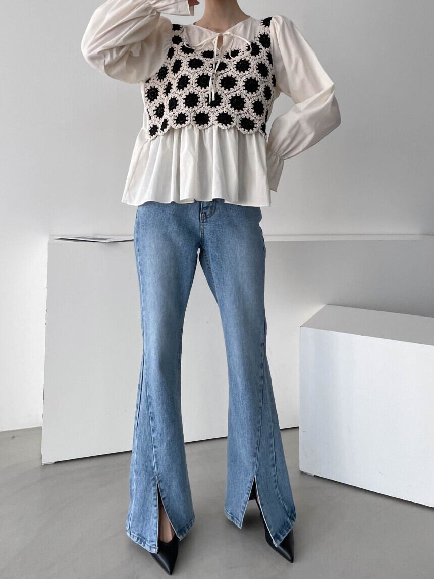 かぎ針編みレース×ブラウスがおしゃれなデザイントップス。