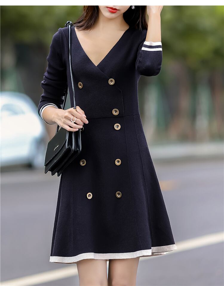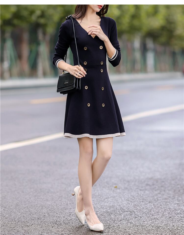 ワンピース ミニ丈 袖あり 長袖 Vネック フレア Aライン ハイウエスト ウール 大人可愛い きれいめ 上品 おしゃれ 大人女子 ラブリー キュート 主役級 ライン 春 秋 2021 10代 20代 レディース デート お出かけ 休日 イベント ホテル レストラン 着回し 普段使い 韓国系 ファッション モテ 美脚 脚長 新作 インスタ映え サイズ S M L XL 色展開 ネイビー