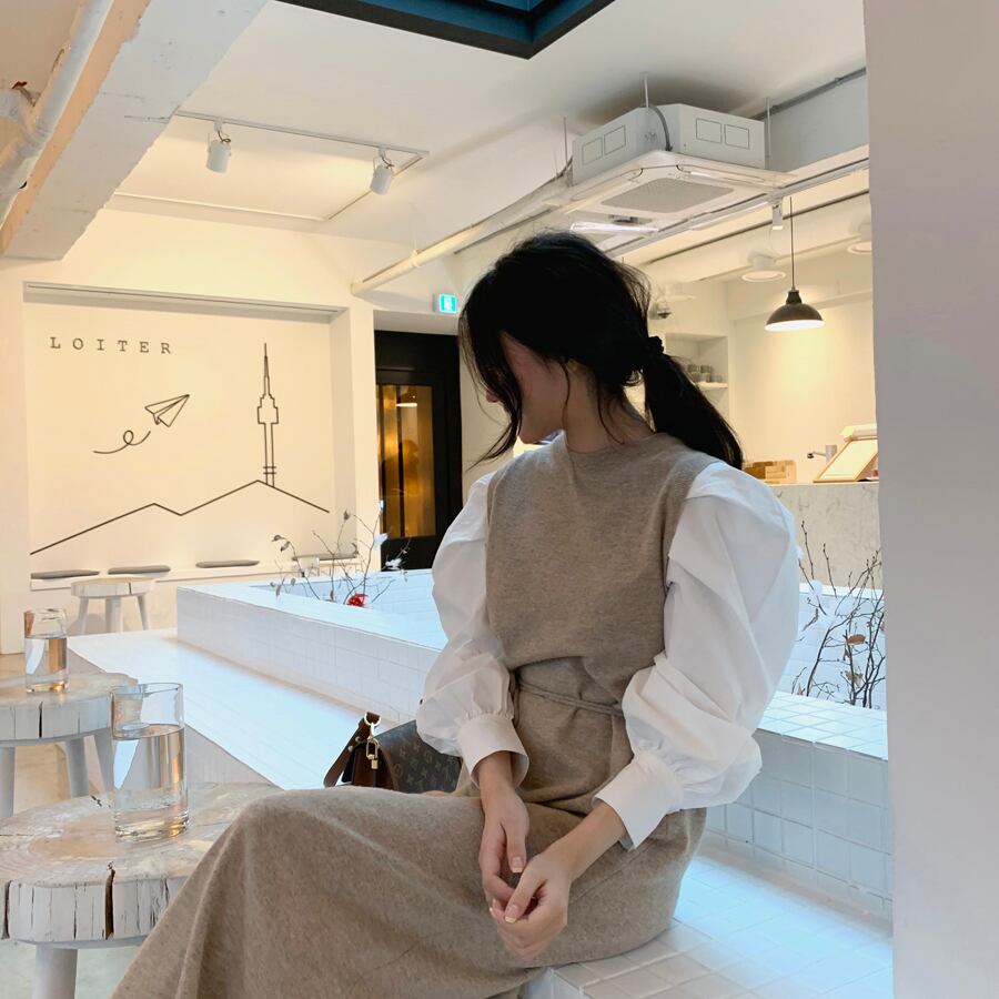 チックフレンチカラー プリーツ ブリスタースリーブ クラッシュカラー パッチワークストラップ ニットドレス ワンピース ワンピドレス ロング丈 ノースリーブ 長袖 ラウンドネック ストレート ドッキング ドッキング ハイウエスト 大人可愛い きれいめ シンプル カジュアル レトロ こなれ感 ラフ 無地 春 秋 10代 20代 OL 通勤 学生 通学 デート お出かけ 女子会 お泊まり 休日 リゾート 旅行 普段使い ブラック ブラウン