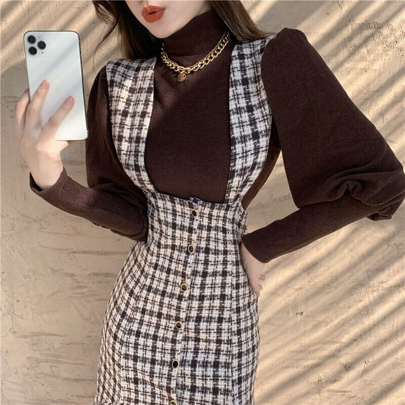 千鳥格子柄サスペンダースカート スカート ボトムス ミモレ ミモレ丈 ロング ロング丈 フレア マーメイド ハイウエスト かわいい 大人可愛い きれいめ シンプル カジュアル 大人 上品 おしゃれ お洒落 レトロ 大人可愛い 大人女子 こなれ感 ラブリー キュート ガーリー 主役級 存在感 柄 千鳥格子 春 秋 10代 20代 30代 レディース 学生 通学 デート お出かけ 公園デビュー 女子会 休日 着回し 普段使い 重ね着 韓国系 オルチャン サイズ S M 色展開 黒 ブラック 茶色 ブラウン