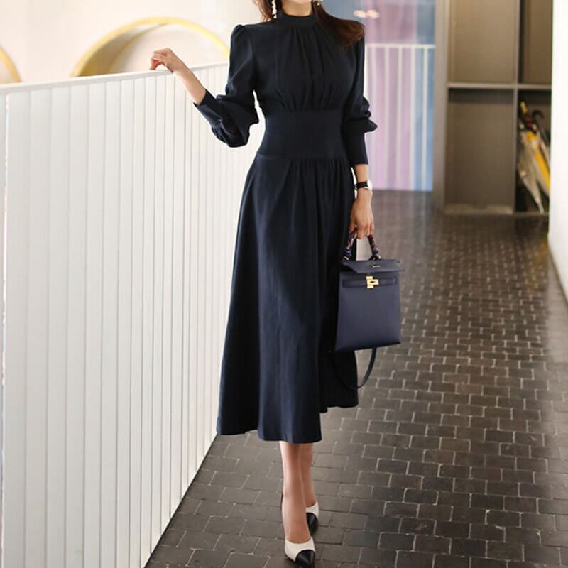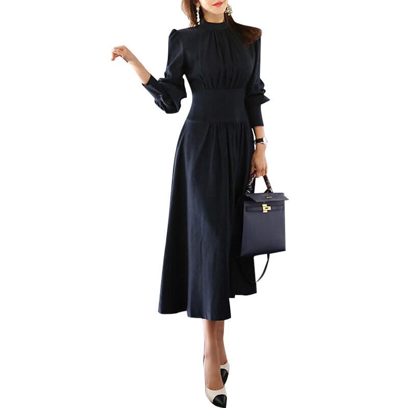 ハイウエストワンピース ワンピース フレアワンピース ワンピドレス 膝丈 ひざ丈 袖あり 長袖 ハイネック フレア ハイウエスト かわいい 大人可愛い きれいめ シンプル カジュアル 大人 上品 おしゃれ お洒落 レトロ 大人可愛い 大人女子 こなれ感 ラブリー キュート ガーリー 主役級 存在感 無地 春 秋 10代 20代 30代 レディース 学生 通学 デート お出かけ 公園デビュー 女子会 休日 パーティー イベント 着回し 普段使い 重ね着 韓国系 オルチャン サイズ S M L XL ネイビー