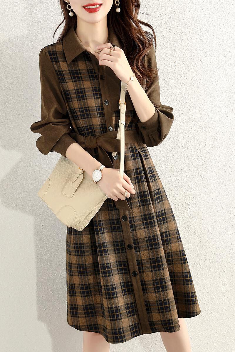 ワンピース 膝丈 ひざ丈 7分袖 七分袖 襟付き Aライン ウエストリボン かわいい 大人可愛い きれいめ シンプル 大人 上品 おしゃれ お洒落 大人可愛い 大人女子 こなれ感 ラフ メンズライク 個性的 主役級 存在感 春 秋 10代 20代 レディース デート お出かけ 女子会 お泊まり 休日 パーティー イベント 普段使い ファッション コーデ スタイル 楽ちん モテ トレンド 流行 インスタ映え S M L XL 2XL 茶色 ブラウン