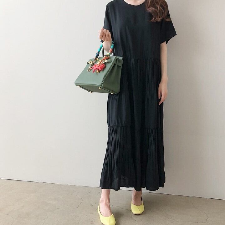 ワンピース 袖あり 半袖 ラウンドネック Aライン プリーツ ハイウエスト 大人可愛い シンプル カジュアル おしゃれ こなれ感 キュート ガーリー ルーズ とろみ感 無地 春 夏 2022 10代 20代 30代 レディース デート お出かけ 女子会 休日 リゾート 旅行 着回し 普段使い 重ね着 韓国系 ファッション 楽ちん モテ 新作 定番 サイズ M L XL 2XL ゆる 色展開 黒 ブラック グレーブルー ネイビー