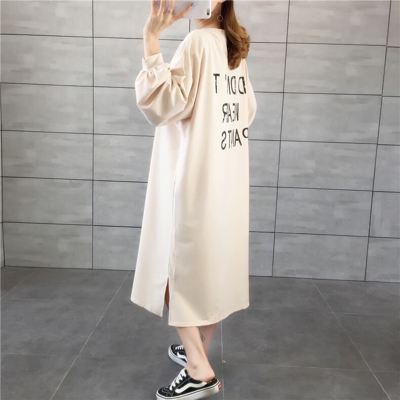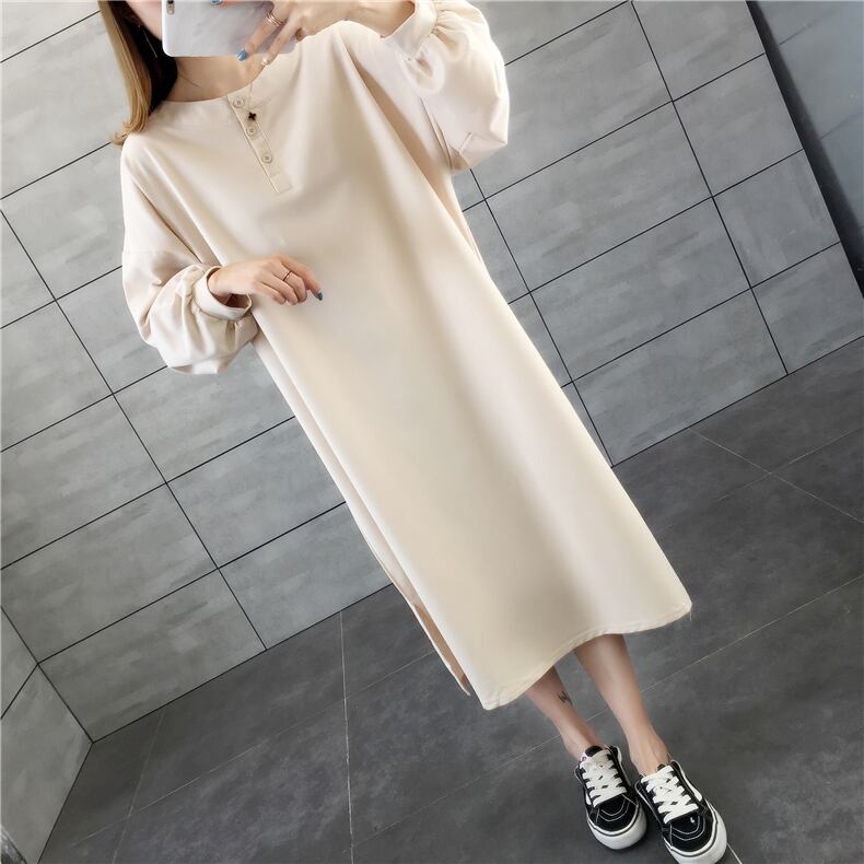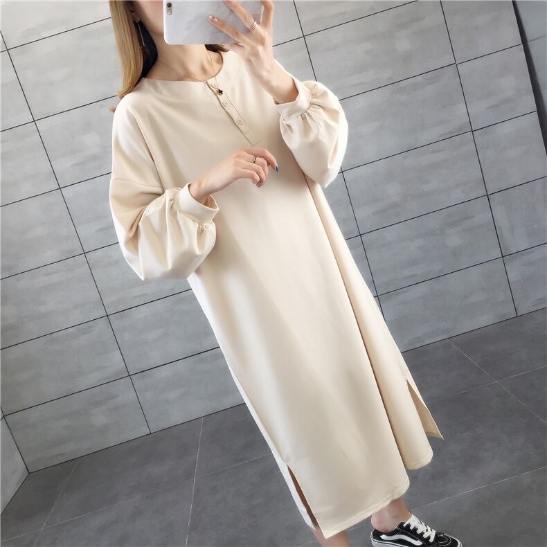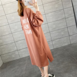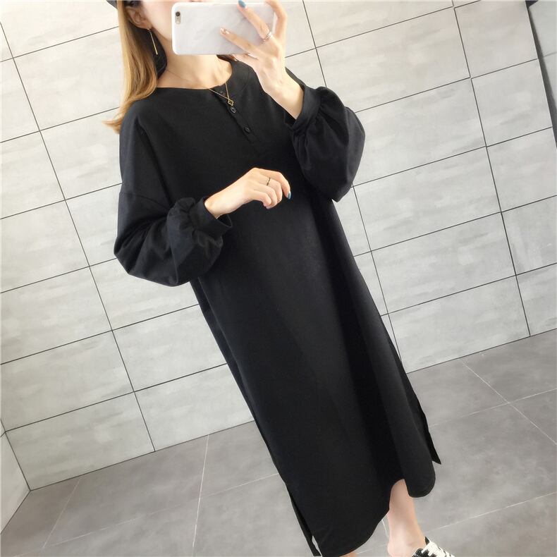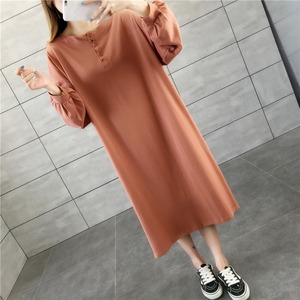 ラフワンピース ワンピース 部屋着 ミモレ ミモレ丈 袖あり 長袖 パフスリーブ ラウンドネック ストレート Iライン かわいい シンプル カジュアル おしゃれ ラフ ルーズ 春 秋 10代 20代 30代 レディース 女性用 ママ マタニティ 学生 お出かけ お泊まり 休日 韓国 韓国系 楽ちん M L XL 黒 ブラック 茶色 ブラウン オフホワイト オレンジ