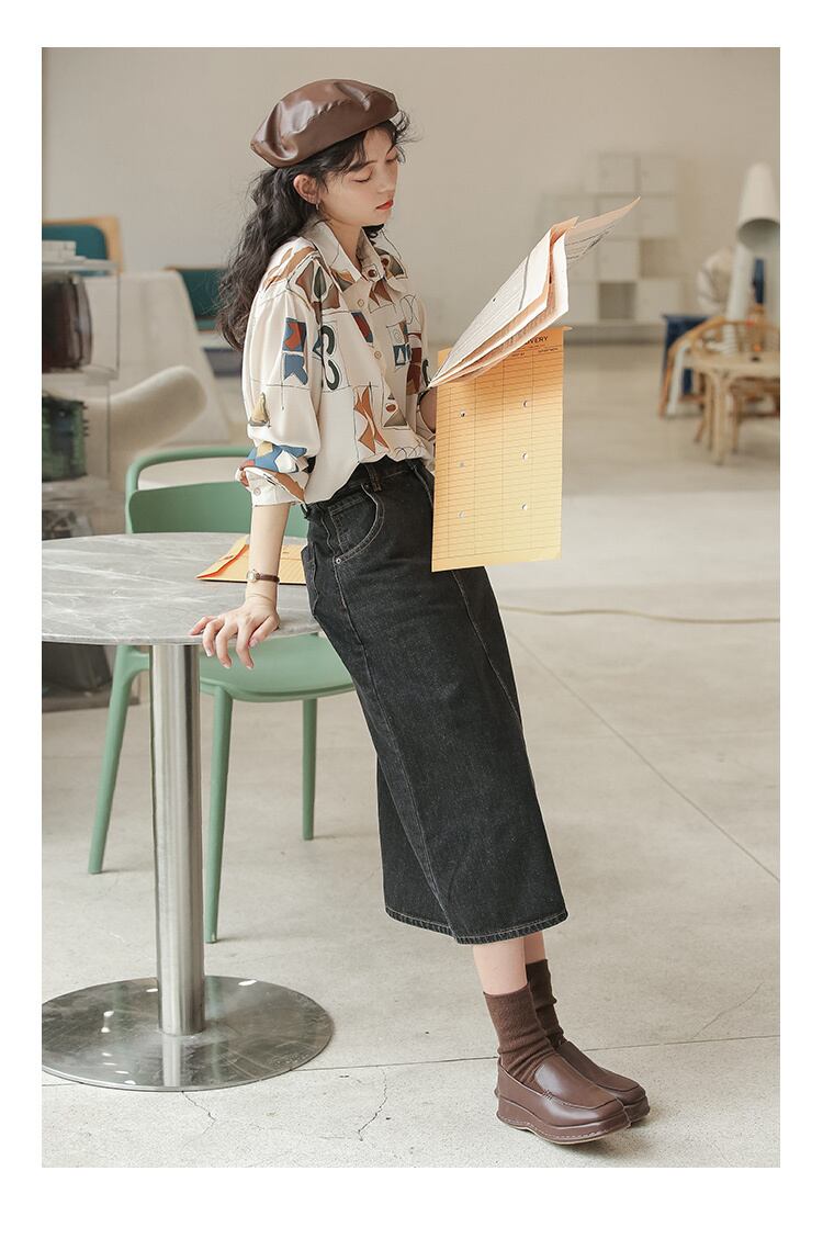 レトロシャツ トップス シャツ ブラウス 袖あり 長袖 襟付き 前開き 薄手 かわいい カジュアル おしゃれ お洒落 レトロ こなれ感 ラフ マニッシュ キュート ガーリー ルーズ 個性的 とろみ感 柄 春 秋 10代 20代 30代 レディース 女性用 学生 通学 デート 休日 着回し 普段使い 韓国 韓国系 S M L オフホワイト くすみカラー 秋カラー ニュアンスカラー