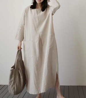 春夏にぴったりなコットンリネンで仕立てたワンピース。