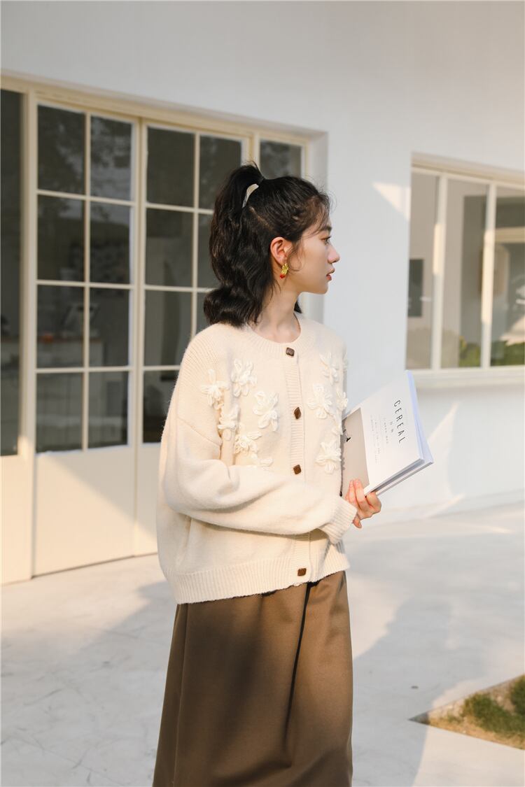 花刺?カーディガン トップス カーディガン 袖あり 長袖 ラウンドネック 刺繍 前開き かわいい 大人可愛い きれいめ シンプル カジュアル 大人 上品 おしゃれ お洒落 レトロ 大人可愛い 大人女子 こなれ感 ラフ ラブリー キュート ガーリー 主役級 存在感 無地 秋 冬 10代 20代 30代 レディース 学生 通学 デート お出かけ 公園デビュー 女子会 休日 着回し 普段使い 重ね着 韓国系 オルチャン サイズ S M L 色展開 黒 ブラック アプリコット