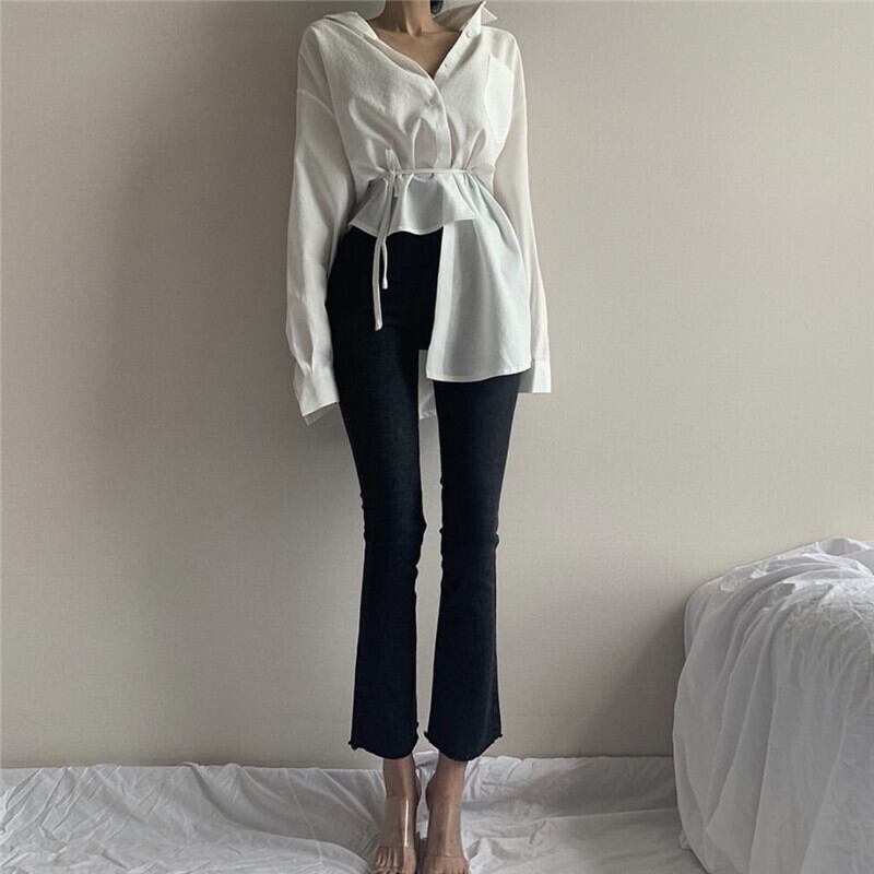 アシンメトリーデザインシャツ トップス シャツ 袖あり 長袖 Vネック 襟付き ウエストマーク ウエストリボン 前開き 綿 ポリエステル かわいい 大人可愛い きれいめ シンプル カジュアル 大人 上品 おしゃれ お洒落 レトロ 大人可愛い 大人女子 こなれ感 ラフ ラブリー キュート ガーリー 主役級 存在感 無地 春 秋 10代 20代 30代 レディース OL 通勤 学生 通学 デート お出かけ 公園デビュー 女子会 休日 着回し 普段使い 重ね着 韓国系 オルチャン 色展開 白 ホワイト