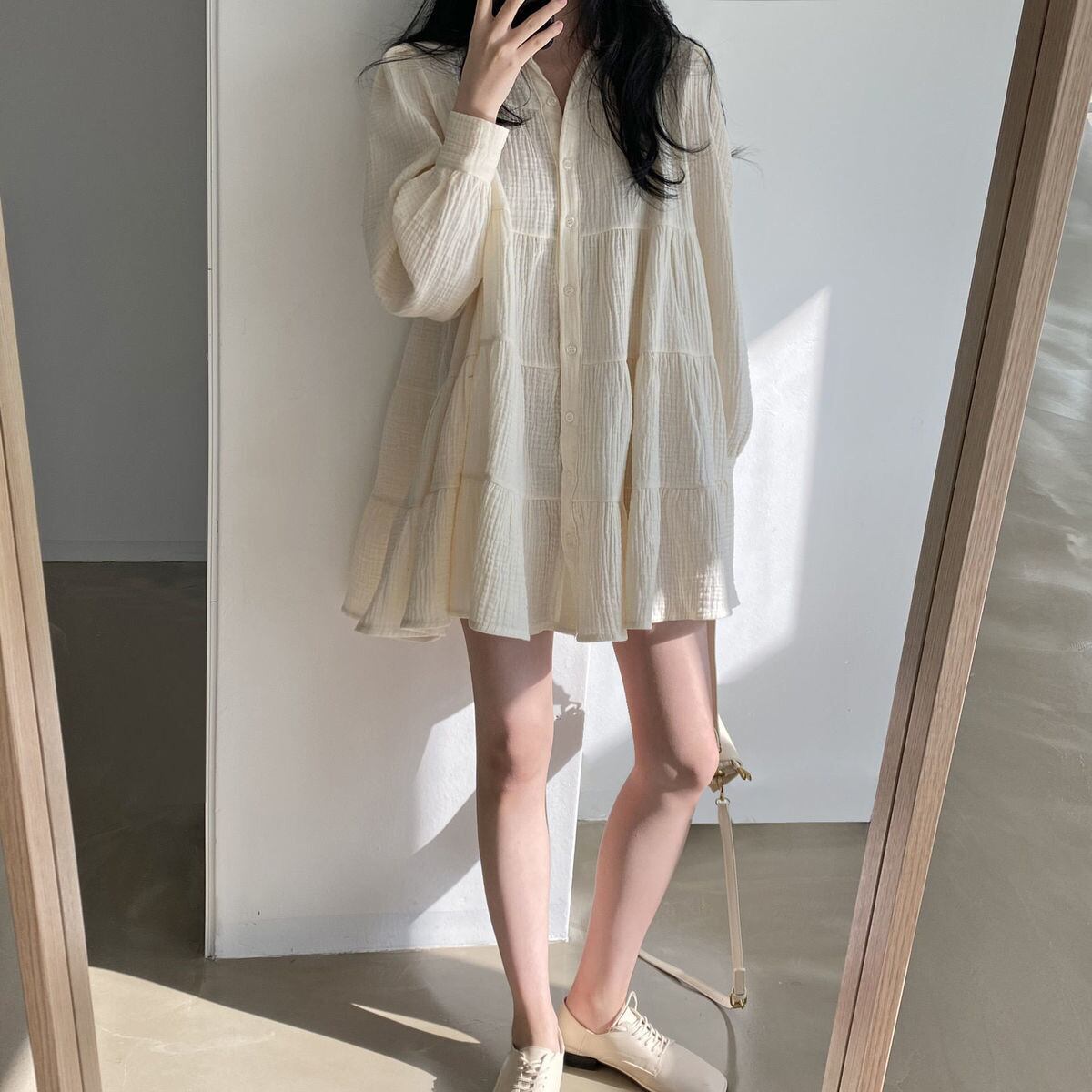 ティアードワンピース ワンピース フレアワンピース ミニ ミニ丈 袖あり 長袖 襟付き フレア 前開き かわいい 大人可愛い きれいめ シンプル カジュアル 大人 上品 おしゃれ お洒落 大人可愛い 大人女子 こなれ感 ラフ ラブリー キュート ガーリー 個性的 主役級 存在感 抜け感 無地 春 秋 10代 20代 30代 レディース 学生 通学 デート お出かけ 公園デビュー 女子会 休日 着回し 普段使い 重ね着 韓国系 オルチャン サイズ S M L XL 色展開 黒 ブラック アプリコット