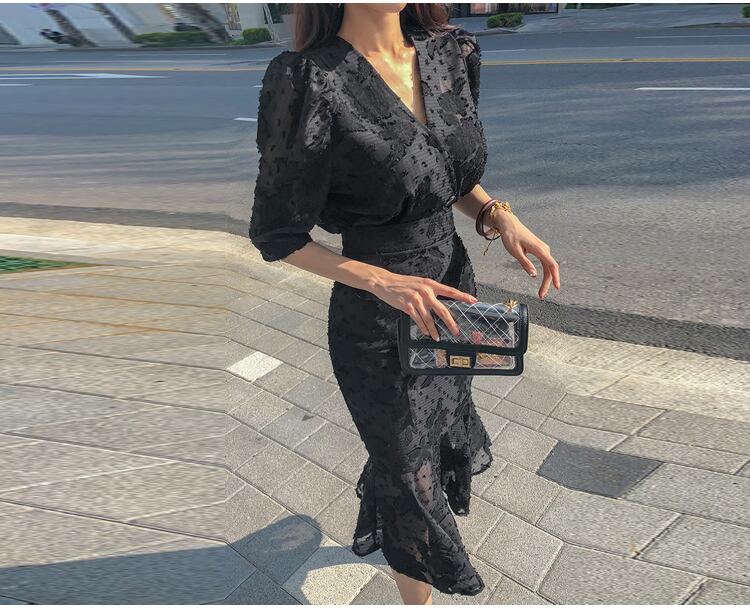 深めのVネック、マーメイドラインがとってもお洒落◎