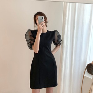 バブルスリーブのシンプルなワンピース