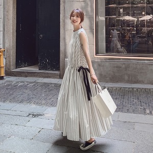ストライプ柄ノースリーブワンピース フレアワンピース ワンピドレス ロング ロング丈 マキシ マキシ丈 袖なし ノースリーブ ラウンドネック フレア Aライン リボン 綿 かわいい 大人可愛い きれいめ シンプル カジュアル 大人 上品 おしゃれ お洒落 かっこいい レトロ 大人可愛い 大人女子 こなれ感 ラフ ラブリー キュート ガーリー 個性的 主役級 存在感 抜け感 柄 ストライプ 春 夏 10代 20代 30代 レディース 学生 通学 デート お出かけ 公園デビュー 女子会 休日 着回し