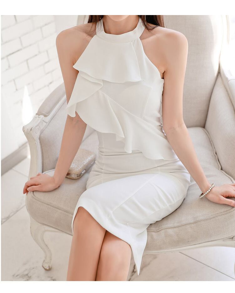 フリルタイトワンピース ワンピドレス ミモレ ミモレ丈 袖なし ノースリーブ ラウンドネック スリム タイト 細身 フリル 透け感 シースルー ポリエステル かわいい 大人可愛い きれいめ シンプル カジュアル 大人 上品 おしゃれ お洒落 かっこいい レトロ 大人可愛い 大人女子 こなれ感 ラブリー キュート ガーリー エレガント モダン 主役級 存在感 無地 春 夏 10代 20代 30代 レディース デート お出かけ 女子会 休日 パーティー イベント 着回し 普段使い 重ね着 韓国系 オルチャン