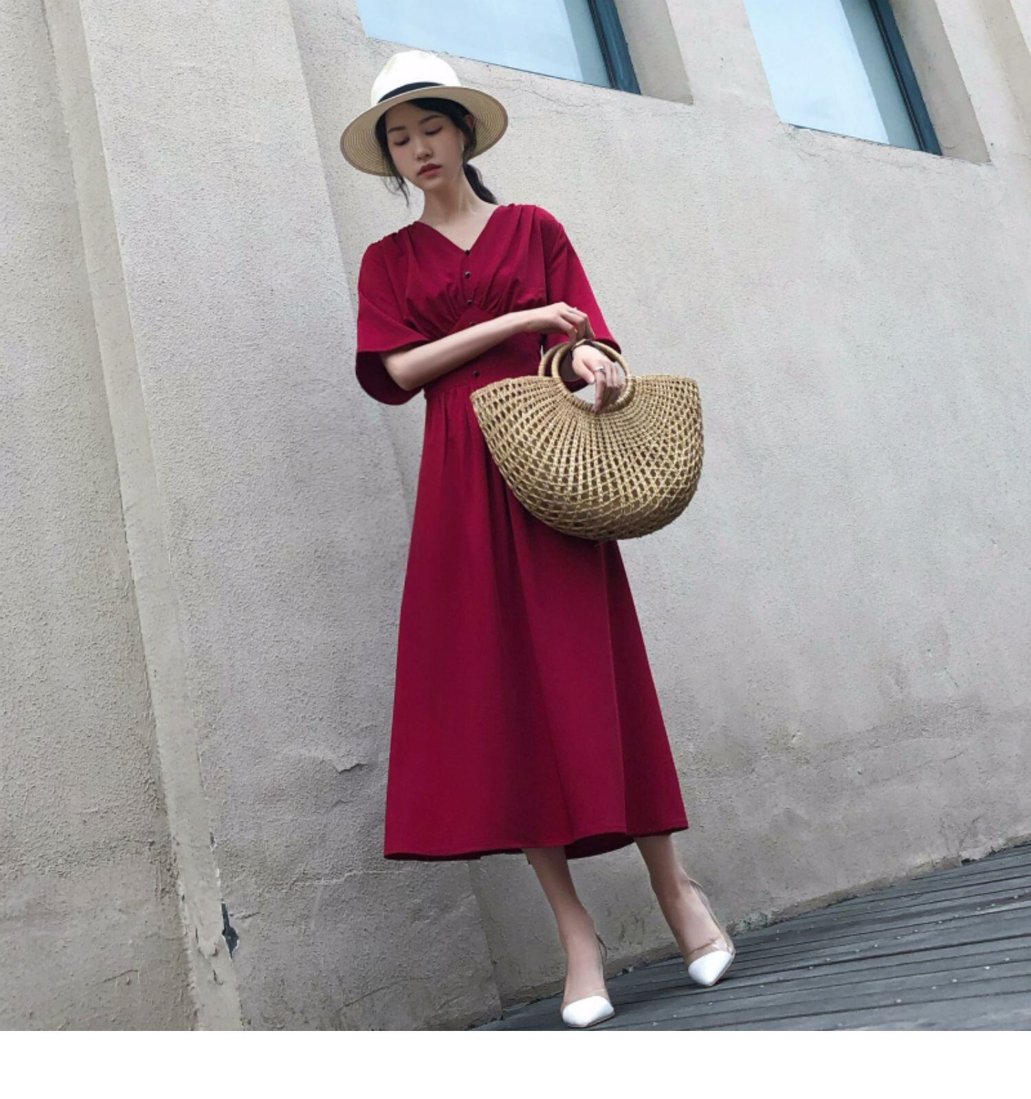 Vネック半袖ワンピース フレアワンピース ミモレ ミモレ丈 ロング ロング丈 袖あり 半袖 Vネック フレア ハイウエスト かわいい 大人可愛い きれいめ シンプル カジュアル 大人 上品 おしゃれ お洒落 かっこいい レトロ 大人可愛い 大人女子 こなれ感 ラフ ラブリー キュート ガーリー モダン 主役級 存在感 無地 春 夏 10代 20代 30代 レディース 学生 通学 デート お出かけ 女子会 休日 着回し 普段使い 重ね着 サイズ S M L XL 2XL 色展開 黒 ブラック