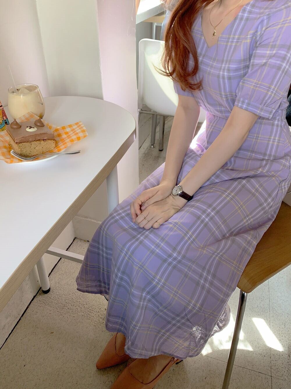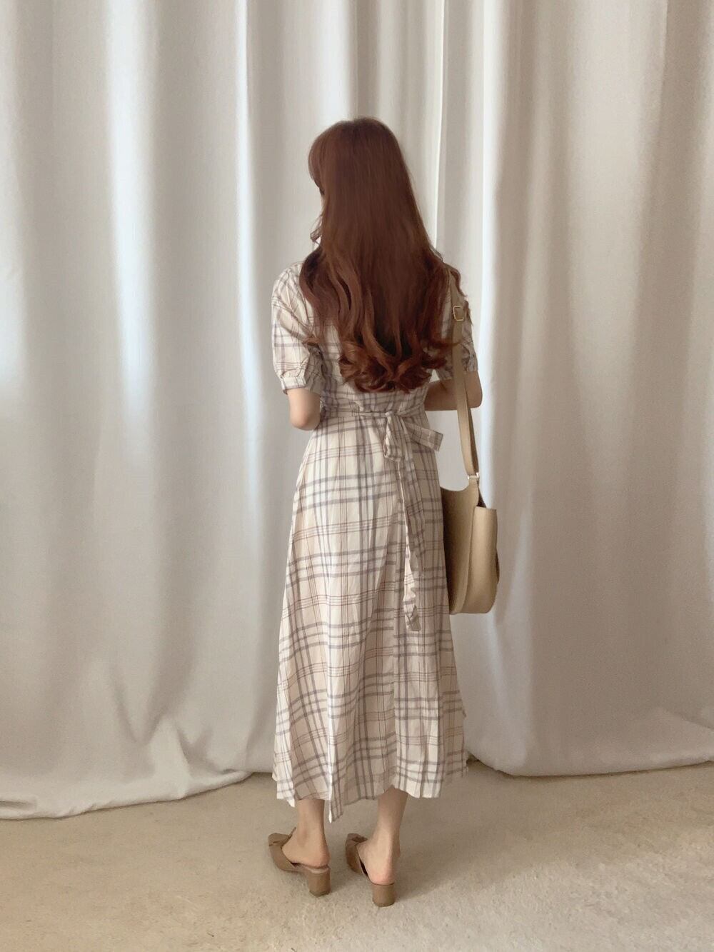 チェック柄ワンピース フレアワンピース ワンピドレス ミモレ ミモレ丈 ロング ロング丈 袖あり 半袖 パフスリーブ Vネック フレア ウエストマーク ウエストリボン ハイウエスト かわいい 大人可愛い きれいめ シンプル カジュアル 大人 上品 おしゃれ お洒落 かっこいい レトロ 大人可愛い 大人女子 こなれ感 ラフ ラブリー キュート ガーリー モダン 主役級 存在感 柄 チェック柄 春 夏 10代 20代 30代 レディース 学生 通学 デート お出かけ 女子会 休日 着回し 普段使い 重ね着