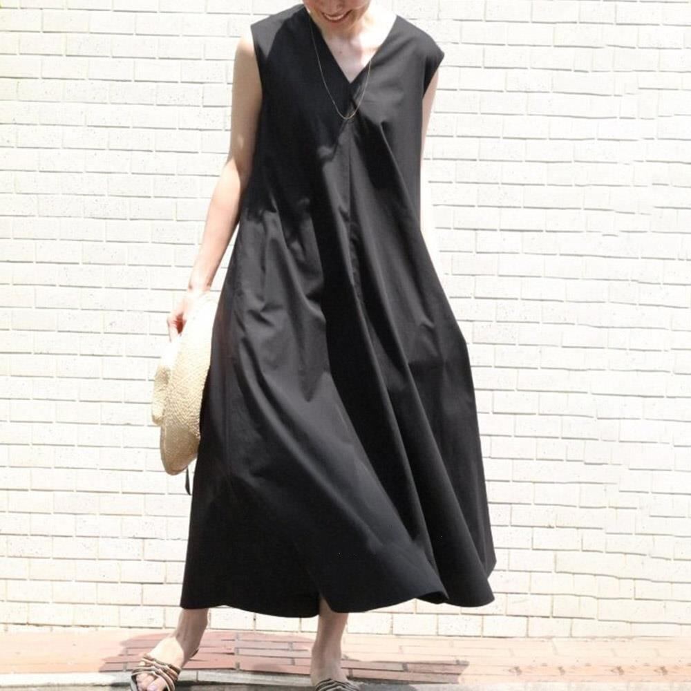 ノースリーブロングワンピース フレアワンピース ワンピドレス ロング ロング丈 袖なし ノースリーブ Vネック フレア Aライン かわいい 大人可愛い きれいめ シンプル カジュアル 大人 上品 おしゃれ お洒落 かっこいい レトロ 大人可愛い 大人女子 こなれ感 ラフ ラブリー キュート ガーリー モダン 主役級 存在感 無地 春 夏 10代 20代 30代 レディース 学生 通学 デート お出かけ 女子会 休日 着回し 普段使い 重ね着 色展開 黒 ブラック 青 ブルー アプリコット