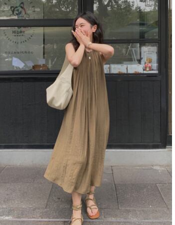 ノースリーブロングワンピース ワンピース ズボン キャミソール ロング丈 袖なし ノースリーブ ラウンドネック フレア Aライン 綿 薄手 南国風 爽やか かわいい 大人可愛い きれいめ シンプル カジュアル 大人 上品 おしゃれ かっこいい アジアン 大人女子 存在感 無地 春 夏 10代 20代 30代 40代 50代 レディース ママ 女の子 学生 通学 デート お出かけ 公園デビュー 女子会 お泊まり 休日 リゾート 海 着回し 普段使い コーデ スタイル 楽ちん モテ 体系カバー XS S M