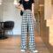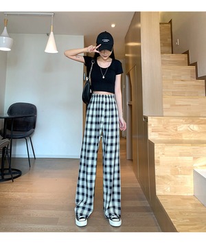 格子広脚パンツ女春夏ハイウエスト秋薄い パンツ ズボン カラーパンツ ロング ハイウエスト かわいい きれいめ カジュアル おしゃれ こなれ感 ラフ ルーズ 存在感 格子柄 春 夏 秋 10代 20代 OL 学生 通学 デート お出かけ 公園デビュー お泊まり 休日 イベント 旅行 普段使い 楽ちん XS S M L XL ゆったり ブラック ブルー グリーン パープル イエロー ピンク