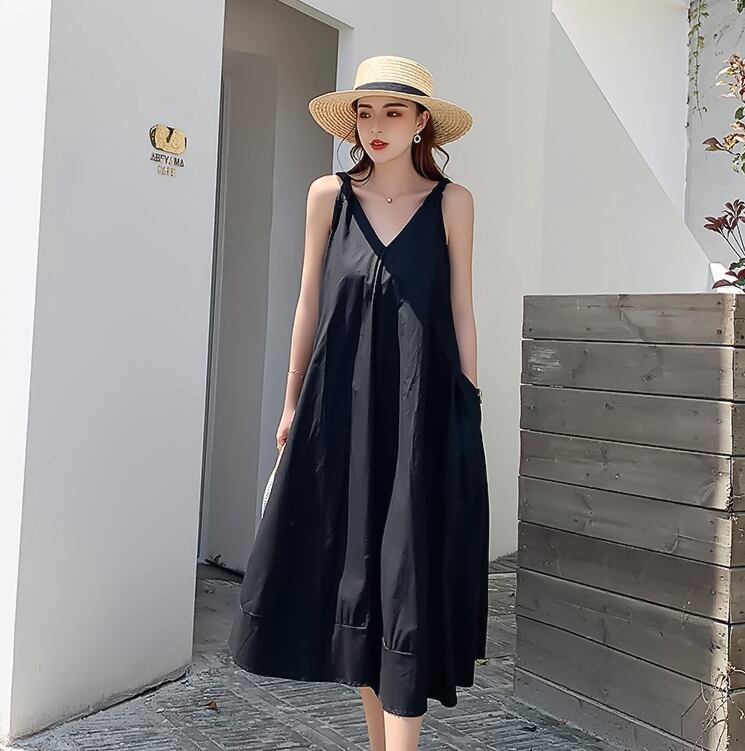 キャミワンピース フレアワンピース ワンピドレス ミモレ ミモレ丈 袖なし ノースリーブ Vネック フレア 綿 ポリエステル かわいい 大人可愛い きれいめ シンプル カジュアル 大人 上品 おしゃれ お洒落 かっこいい レトロ 大人可愛い 大人女子 こなれ感 ラフ ラブリー キュート ガーリー モダン 主役級 存在感 無地 春 夏 秋 10代 20代 30代 レディース 学生 通学 デート お出かけ 女子会 休日 着回し 普段使い 重ね着 サイズ S M L XL 色展開 黒 ブラック