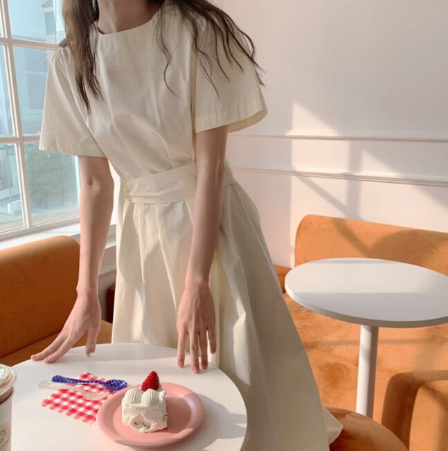 大人なシンプルで夏らしい清楚デザインのタックワンピース♪