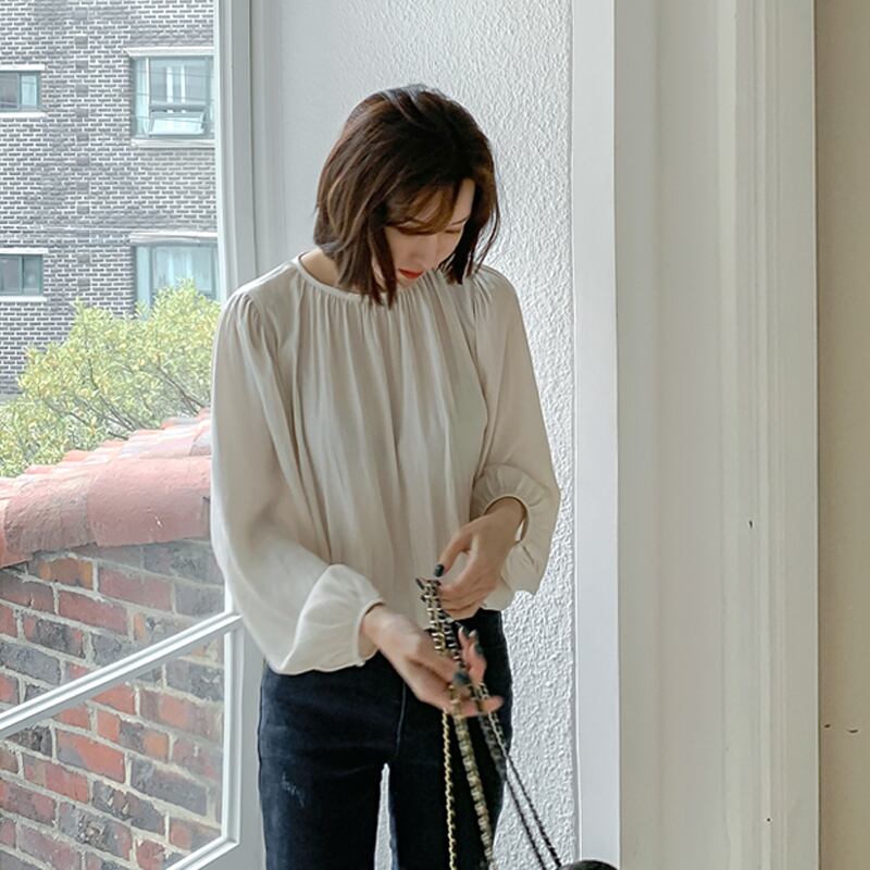 韓国レディース2022春夏新モデルゆったり長袖プリーツシフォンシャツ トップス シャツ 白シャツ 白トップス 長袖 ラウンドネック ストレート プリーツ シフォン 透け感 大人可愛い きれいめ シンプル カジュアル 大人 上品 お洒落 大人女子 こなれ感 ラフ 無地 春 秋 10代 20代 30代 40代 オフィス ビジネス OL 通勤 学生 通学 デート お出かけ 公園デビュー 女子会 お泊まり 休日 リゾート 旅行 ガーデン 着回し 普段使い 重ね着 S M L XL ホワイト ブラック