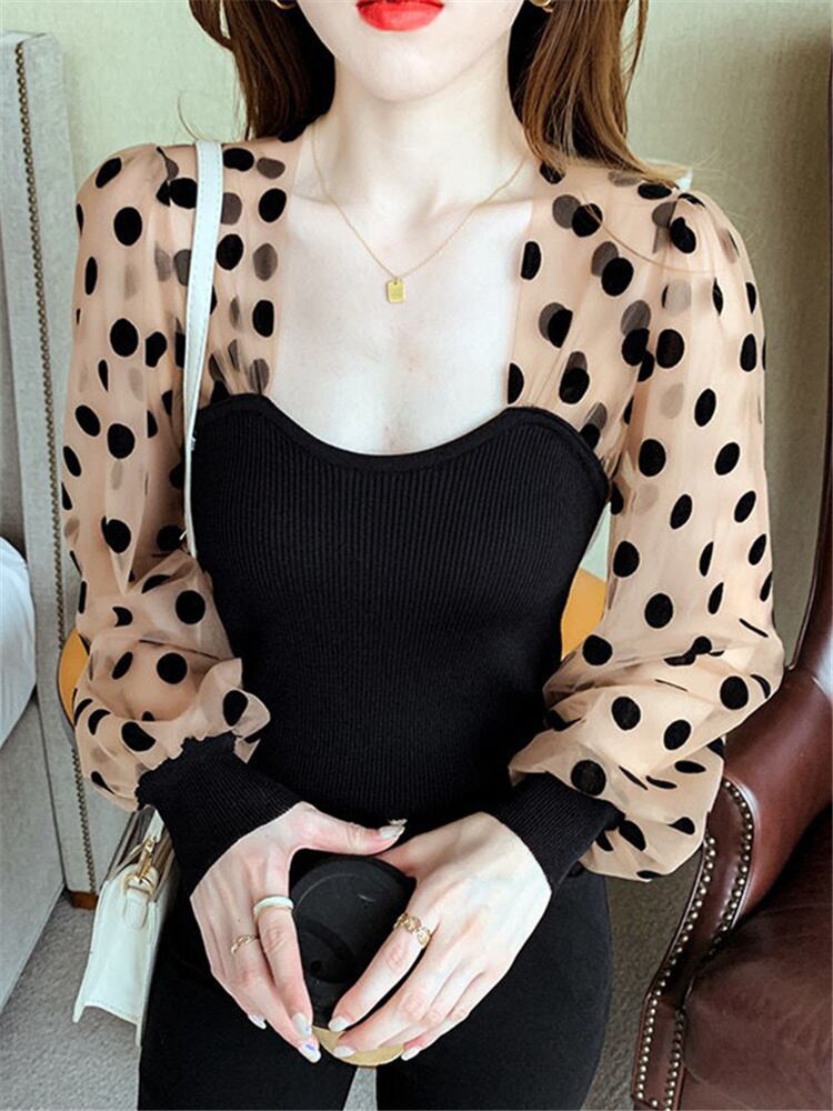 春新しいフレンチウェーブポイント正方形リップロングスリーブパッチワークニットトップス女性 トップス Tシャツ ミディアム丈 長袖 スクエアネック タイト ストレート 切り替えデザイン ドッキング シースルー 大人可愛い きれいめ カジュアル 大人 おしゃれ かっこいい 大人女子 こなれ感 クール モード系 セクシー エレガント モダン 存在感 無地 柄 春 10代 20代 OL 通勤 学生 通学 デート お出かけ 女子会 お泊まり 休日 パーティー イベント 着回し 普段使い S M L XL