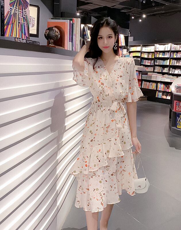 総柄フリルワンピース フレアワンピース 膝丈 ひざ丈 袖あり 半袖 Vネック フレア シフォン フリル ウエストマーク ウエストリボン ハイウエスト かわいい 大人可愛い きれいめ シンプル カジュアル 大人 上品 おしゃれ お洒落 かっこいい 大人可愛い 大人女子 こなれ感 ラブリー キュート ガーリー 個性的 エレガント モダン 主役級 存在感 柄 春 夏 10代 20代 30代 レディース 学生 通学 デート お出かけ 女子会 休日 着回し 普段使い 重ね着 サイズ S M L XL 色展開 赤