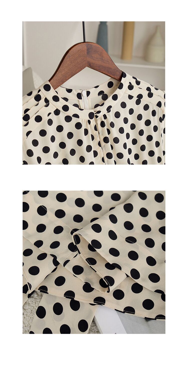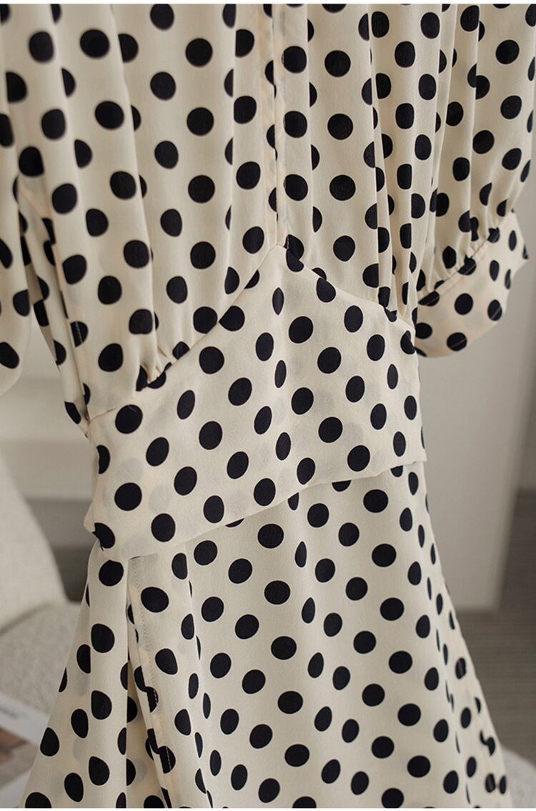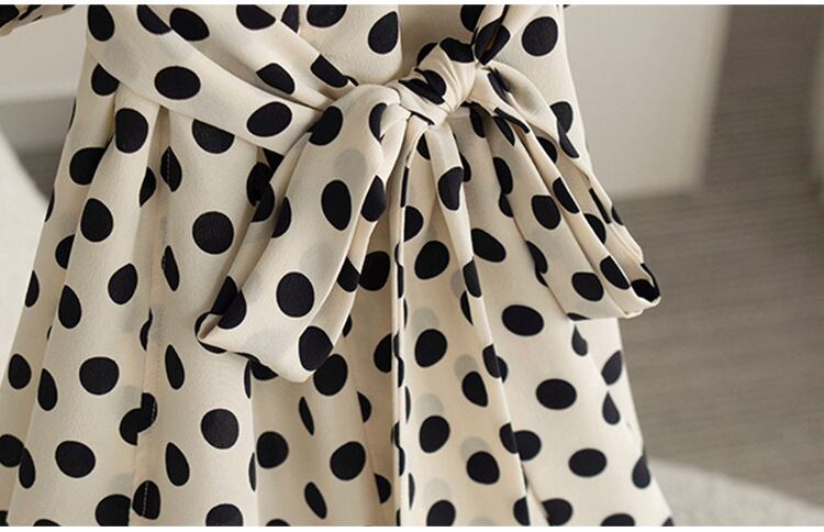 クラシカルなデザインが印象的なドット柄ワンピース。