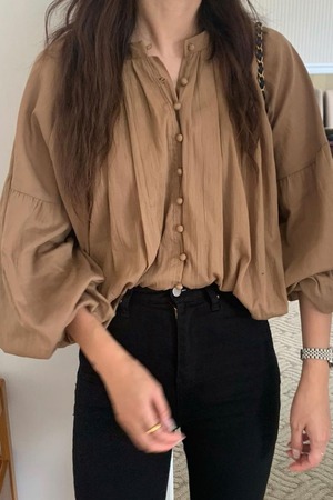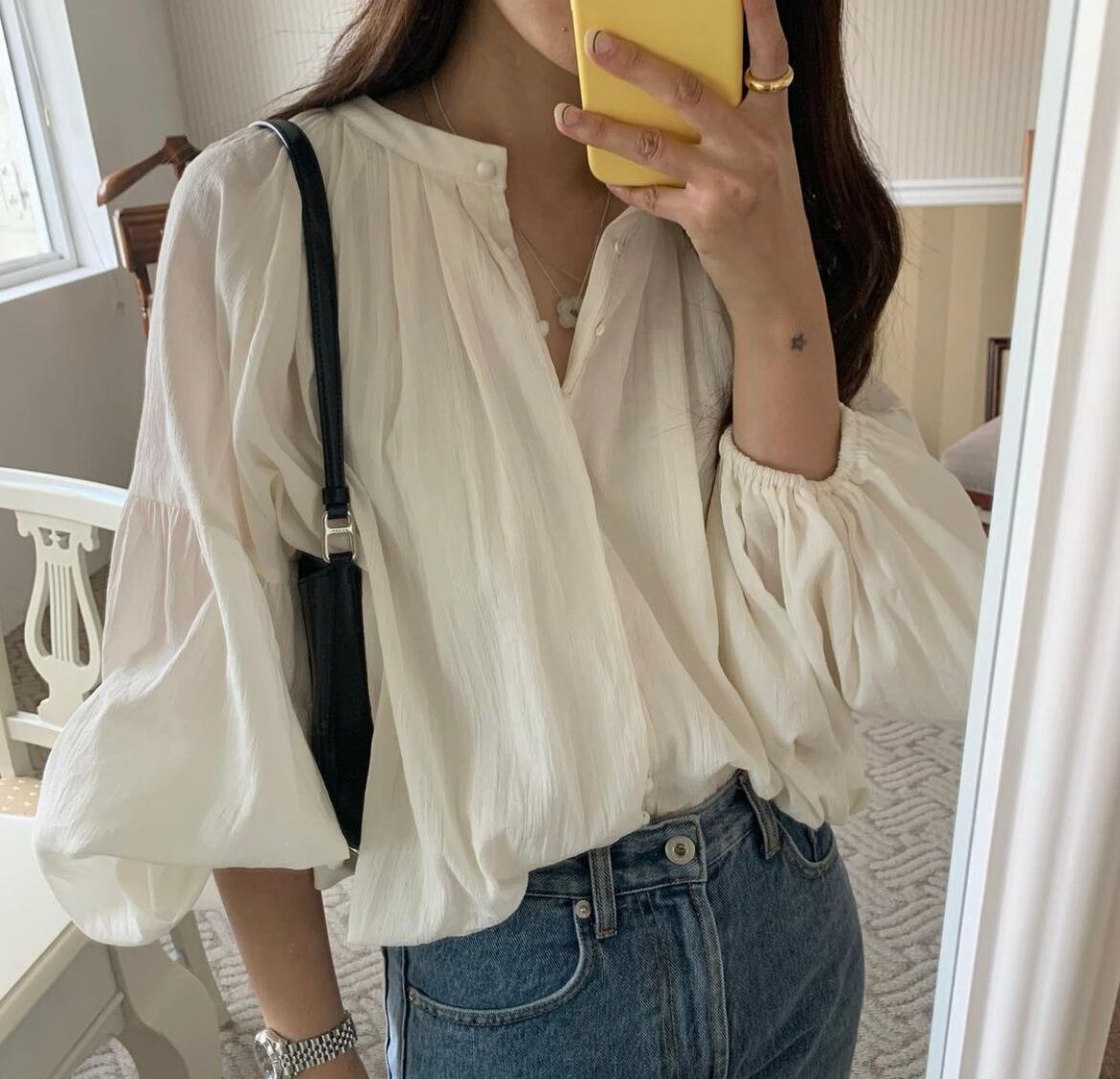 韓国シックなフレンチヴィンテージラウンドカラーシングルバックルランタンスリーブデザインプレーンカラーシャツブラウス トップス シャツ ブラウス ミディアム丈 長袖 ボリューム袖 Vネック 前開き 大人可愛い きれいめ シンプル カジュアル お洒落 レトロ 大人女子 こなれ感 ラフ 無地 春 秋 10代 20代 30代 ビジネス OL 通勤 学生 通学 お出かけ お泊まり 旅行 着回し 普段使い ホワイト ブラウン