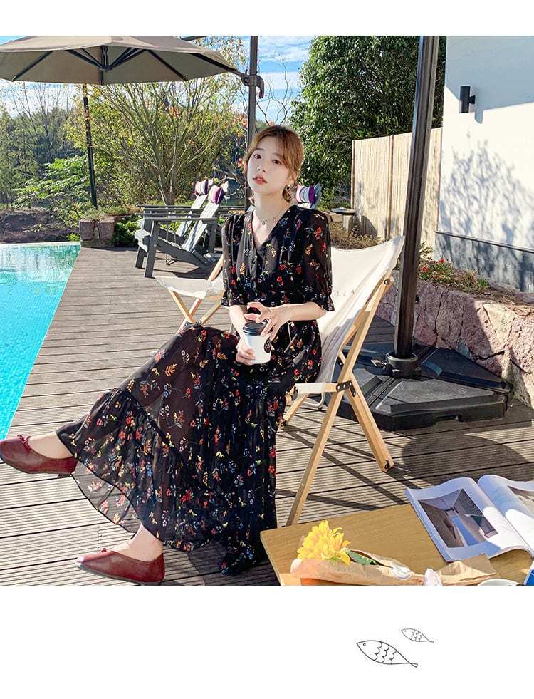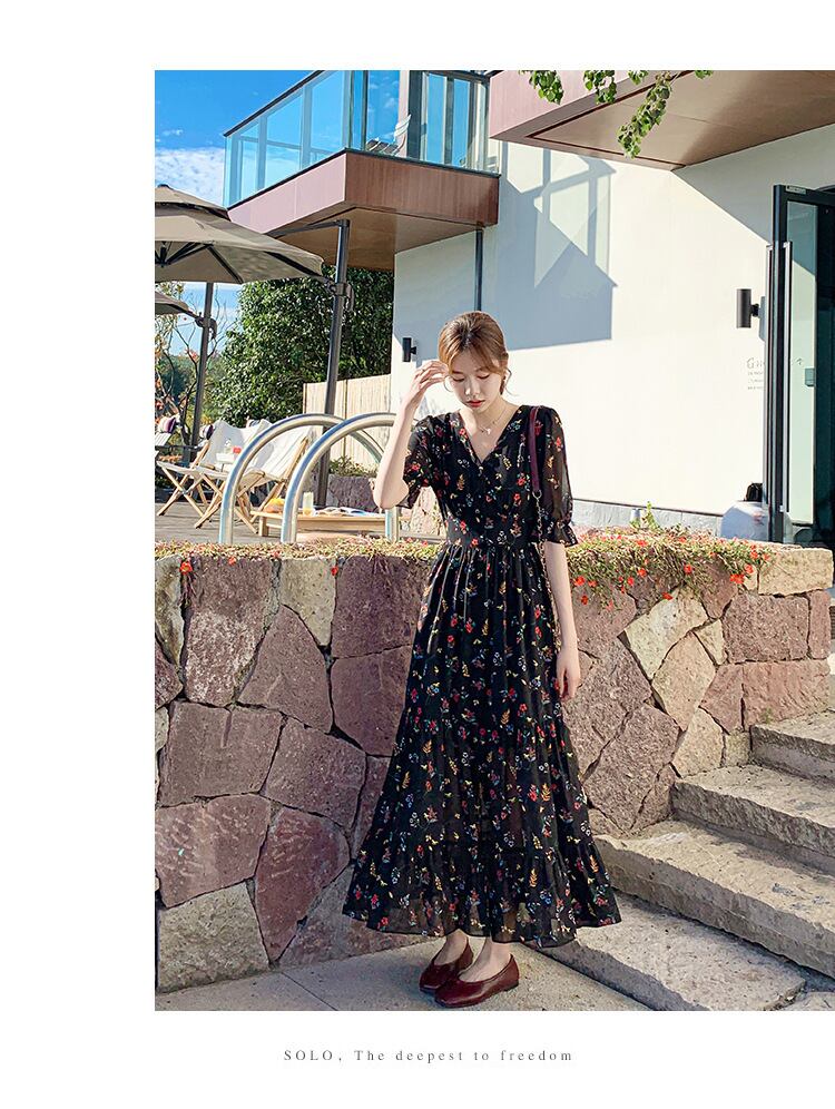 花柄フレアワンピース フレアワンピース ロング ロング丈 マキシ マキシ丈 袖あり 半袖 5分袖 五分袖 パフスリーブ Vネック フレア シフォン ハイウエスト ポリエステル かわいい 大人可愛い きれいめ シンプル カジュアル 大人 上品 おしゃれ お洒落 かっこいい 大人可愛い 大人女子 こなれ感 ラブリー キュート ガーリー モダン 主役級 存在感 柄 花柄 小花柄 春 夏 10代 20代 30代 レディース 学生 通学 デート お出かけ 女子会 休日 リゾート 旅行 着回し 普段使い 重ね着