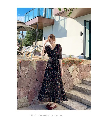 夏のリゾートに1枚はもっていきたい涼しげな花柄ロングワンピース♪